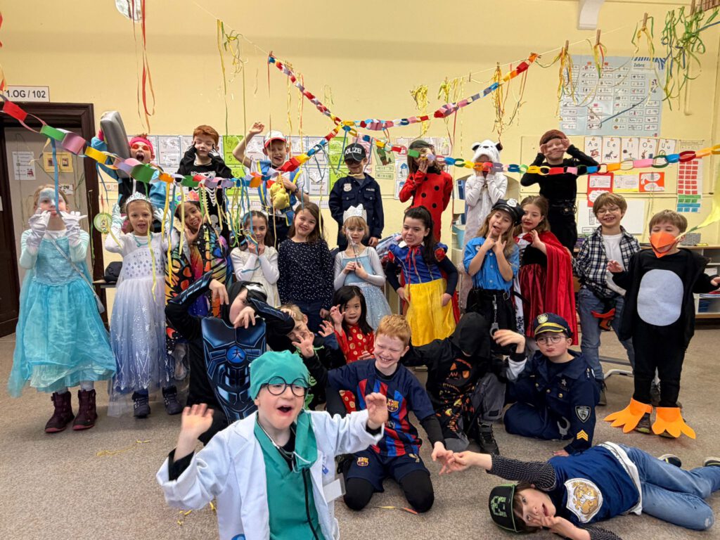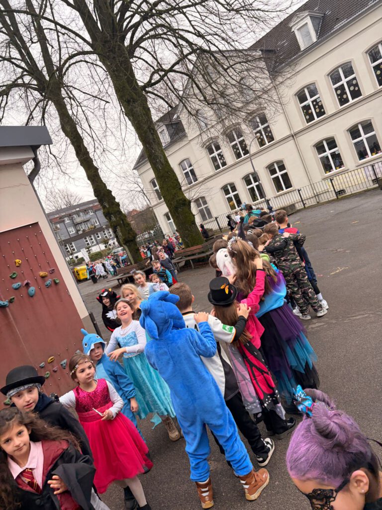 Am Freitag wurde es bei uns richtig bunt und fröhlich: Unsere Karnevalsfeier stand an! In den Klassen wurde zuerst ausgelassen gefeiert – mit Spielen, Musik, guter Laune und vielen leckeren Kleinigkeiten. Danach schlängelte sich eine große Polonaise durch die Schule und über den Schulhof. Zum Abschluss ging die Party in der Aula weiter, wo gemeinsam getanzt, gelacht und gefeiert wurde. Ein Tag voller Spaß, Musik und Karnevalsstimmung! 🎈🥳